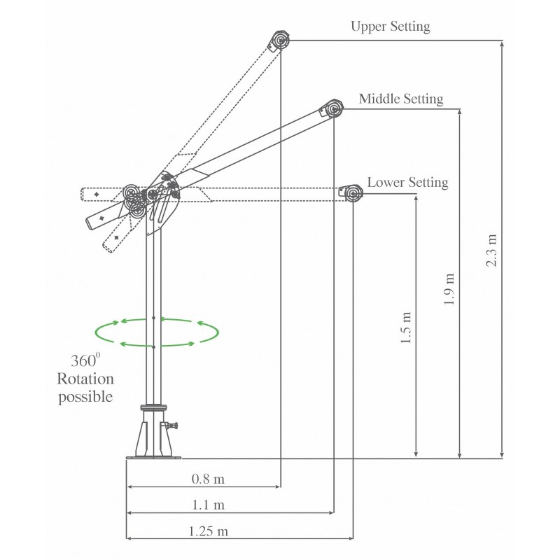 | Justerbar armlängd | 1.5 m / 1.9 m / 2.3 m |