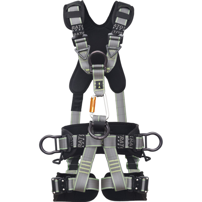 Justerbar överdel, midja och ben med snabbspännen. Selen är utrustad med 2 verktygshållare och en extra stor på baksidan för att kunna bära med sig ytterligare tillbehör. På axelremmen finns en parkeringspunkt som är till för att hänga upp hajkrokar när de inte används.
