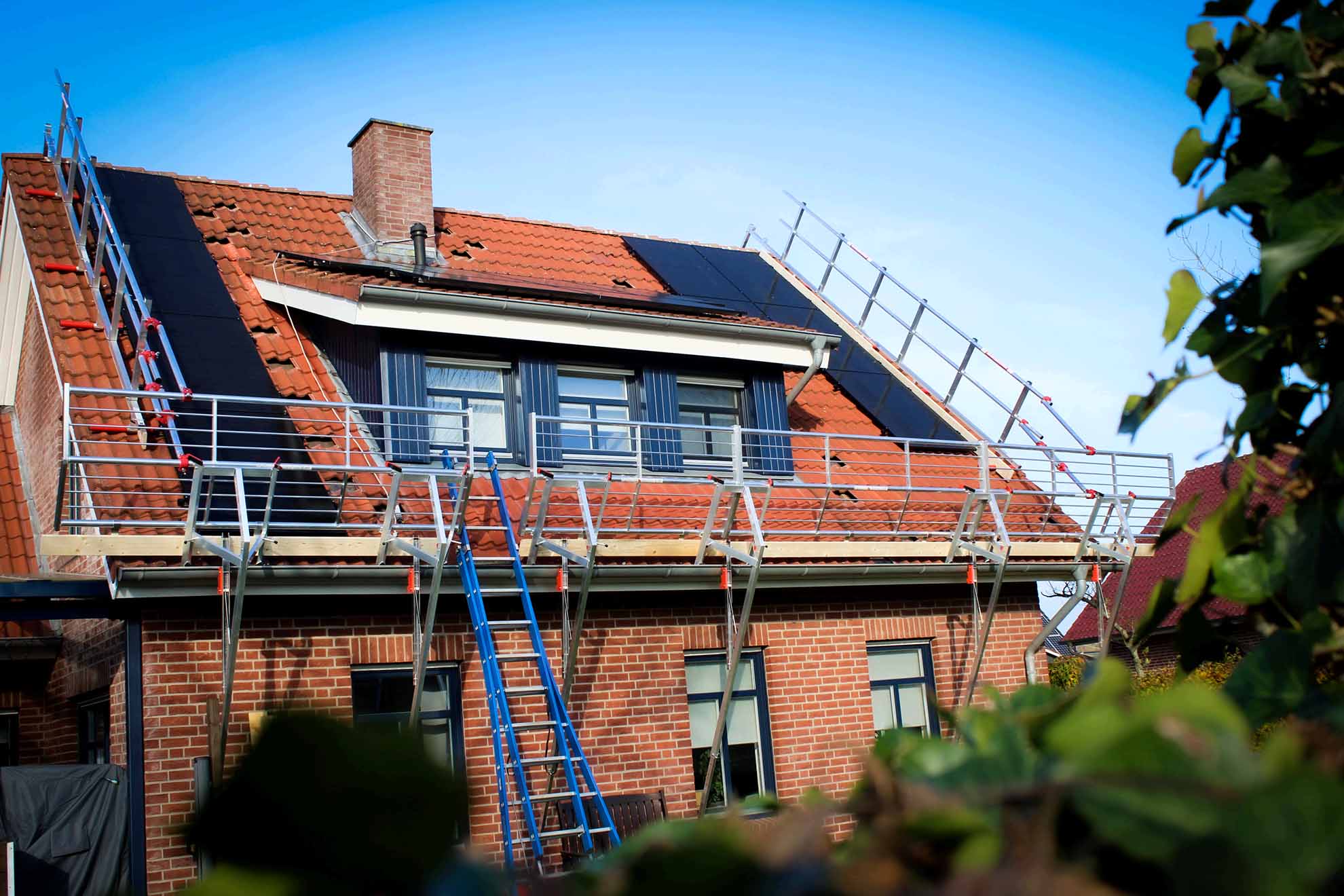 RSS Gavelpaket (RSS Roof Shelter) är en enkel, snabb och säker lösning för att skapa ett kollektivt fallskydd genom att säkra gavlarna.